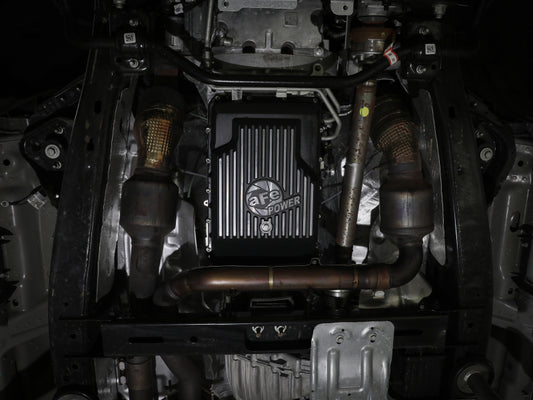 aFe 20-21 Ford Truck w/ 10R140 Transmission Pan Black POWER Street Series w/ Machined Fins